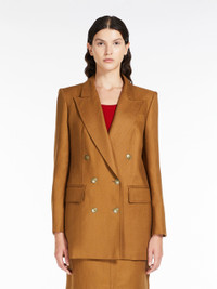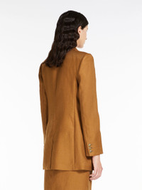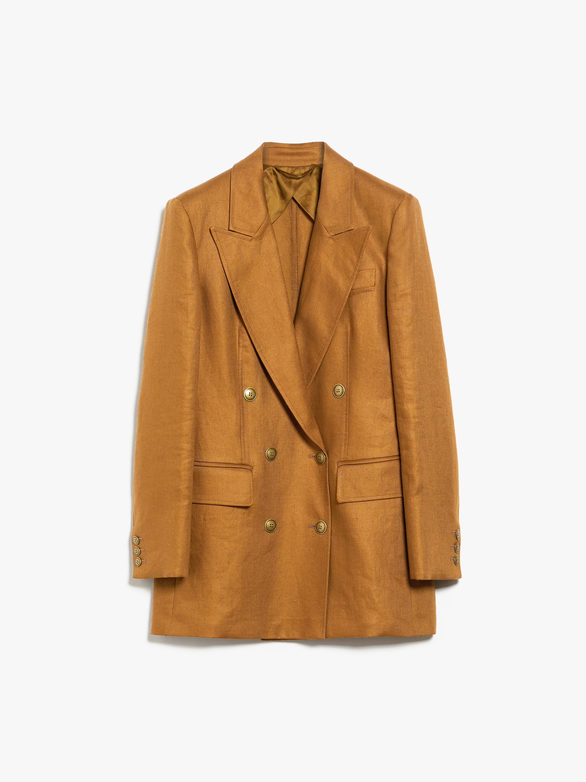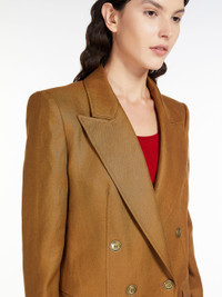 DETAILS Pure linen double-breasted jacket offering a classic fit. Semi-lined model in jacquard monogram fabric, finished with a peak lapel neck, breast pocket, and flap pockets on the front. Metal button fastening with four-hole design. Length: 76 cm. COMPOSITION AND CARE Fabric 100% flaxlinen; lining 53% cotton, 47% cupro. Do not wash; do not bleach; do not tumble dry; cool iron; professionally dry clean perchloroethylene - mild process; do not wet clean.; wash the garment while it is fastened.; turn the articles inside out before washing. Distributed by Max Mara S.r.l., registered office in Reggio Emilia (Italy), Via Giulia Maramotti 4, 42124 (IT)