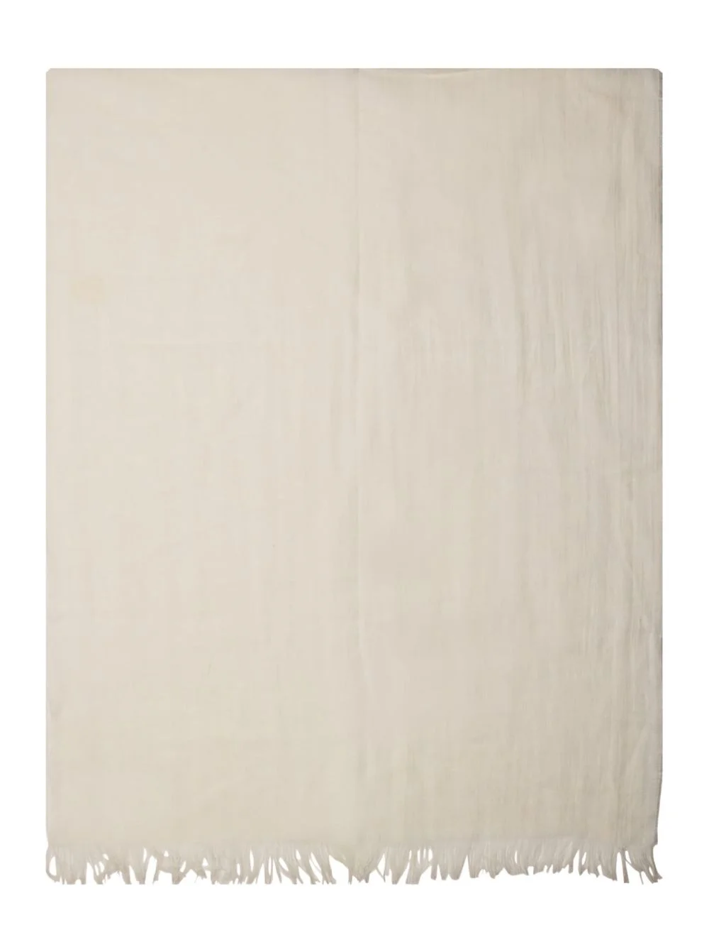 linen scarf Highlights - White - Wraparound style - Rectangle shape - Fringed edge Made in Italy Composition Linen/Flax 100% SIZE & FIT Measurement LENGTH 28.74 in(73 cm) WIDTH 11.41 in(29 cm)