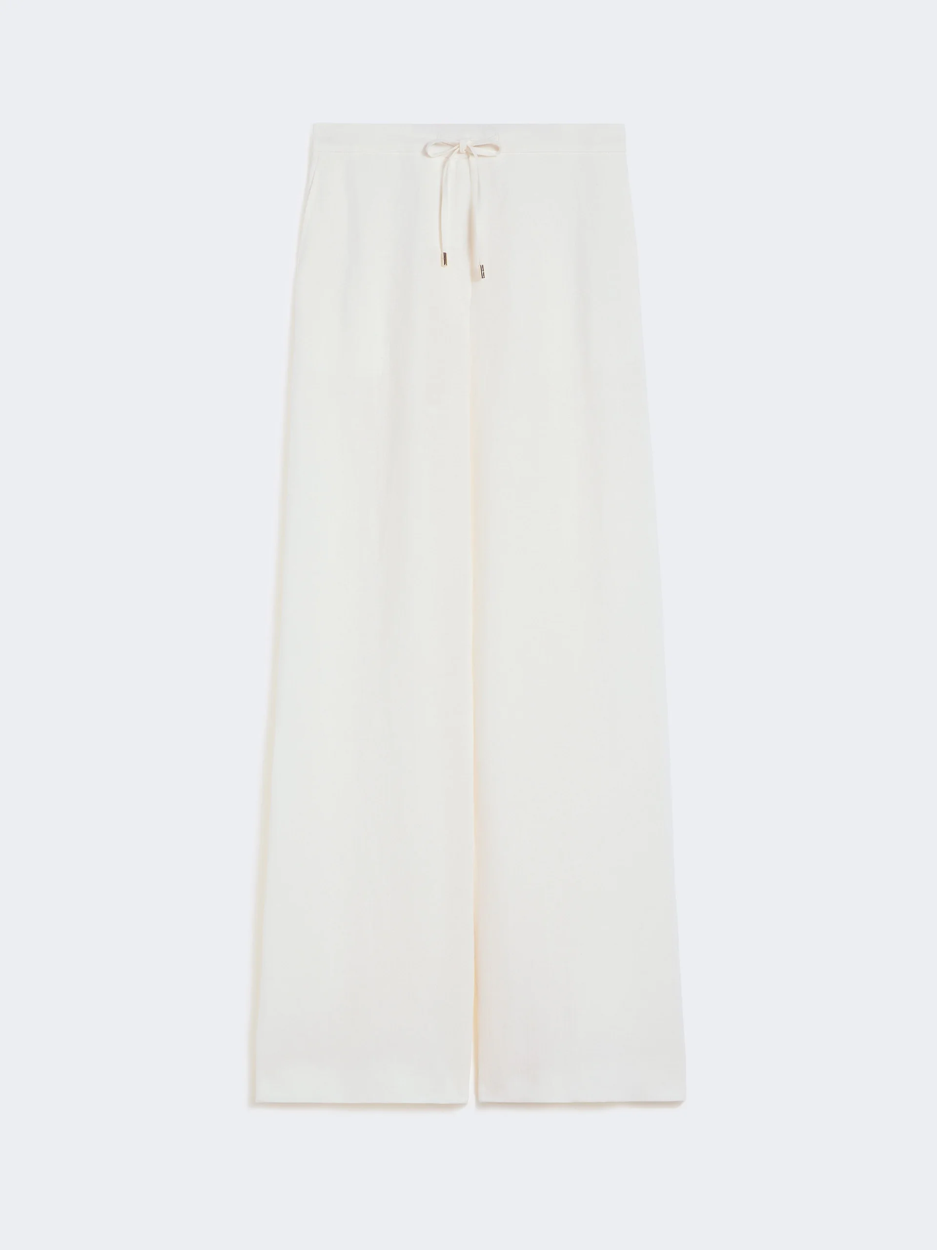 DETAILS Jogger-style trousers with an adjustable waist drawstring. - Faded pure linen twill trousers - Straight leg - Elasticated waist at the back - Covered zip and hook closure - Slant side pockets with tailored stitching - Sewn darts on the back of the waist COMPOSITION AND CARE 100% flaxlinen. Machine wash cold delicate cycle; do not bleach; do not tumble dry; line drying in the shade; cool iron; professionally dry clean perchloroethylene - mild process. Distributed by Max Mara S.r.l., registered office in Reggio Emilia (Italy), Via Giulia Maramotti 4, 42124 (IT) Collection: Studio Product code: 6131046206015 - MSTPELOTA