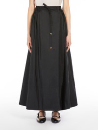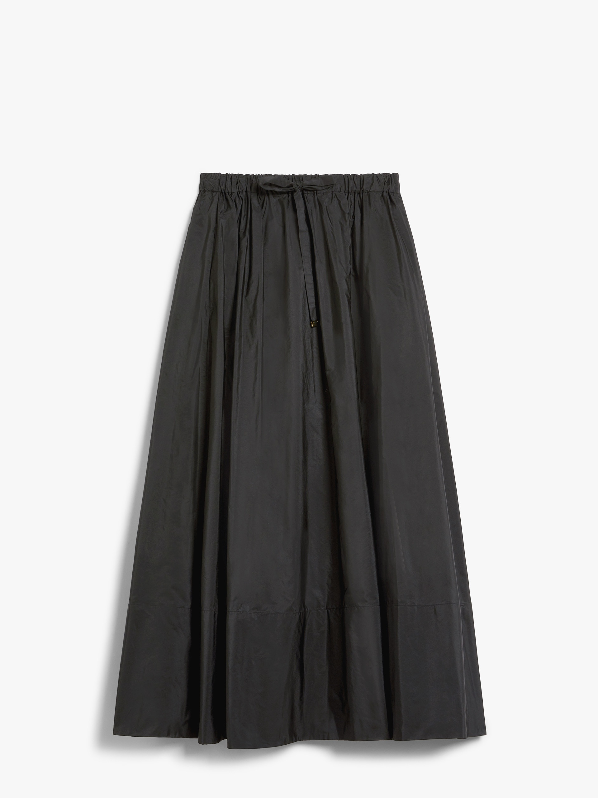 DETAILS Long skirt with elasticated drawstring waist made of lightweight, water-repellent technical taffeta. The silhouette has a full, flared volume, with inset side pockets. The grosgrain ribbon drawstring is finished with metal tips. COMPOSITION AND CARE 100% polyester. Machine wash cold delicate cycle; do not bleach; do not tumble dry; line drying in the shade; cool iron; professionally dry clean perchloroethylene - mild process.; protect the ends stoppers and/or the cord ends before washing.; turn the articles inside out before washing. Distributed by Max Mara S.r.l., registered office in Reggio Emilia (Italy), Via Giulia Maramotti 4, 42124 (IT)
