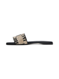 Woven flat sandals in beige. · Open square toe · Jacquard logo pattern at vamp · Logo embossed at padded leather footbed · Grained leather lining · Leather sole with rubber injection Supplier color: Clay