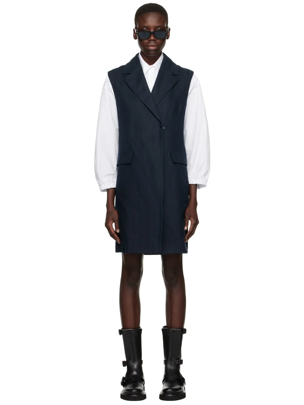 Linen hopsack blazer. · Notched lapel · Double-breasted button closure · Flap and seam pockets · Central vent at back hem · Partial dobby cloth lining Supplier color: Navy