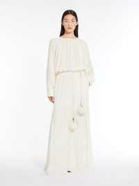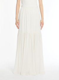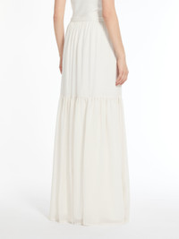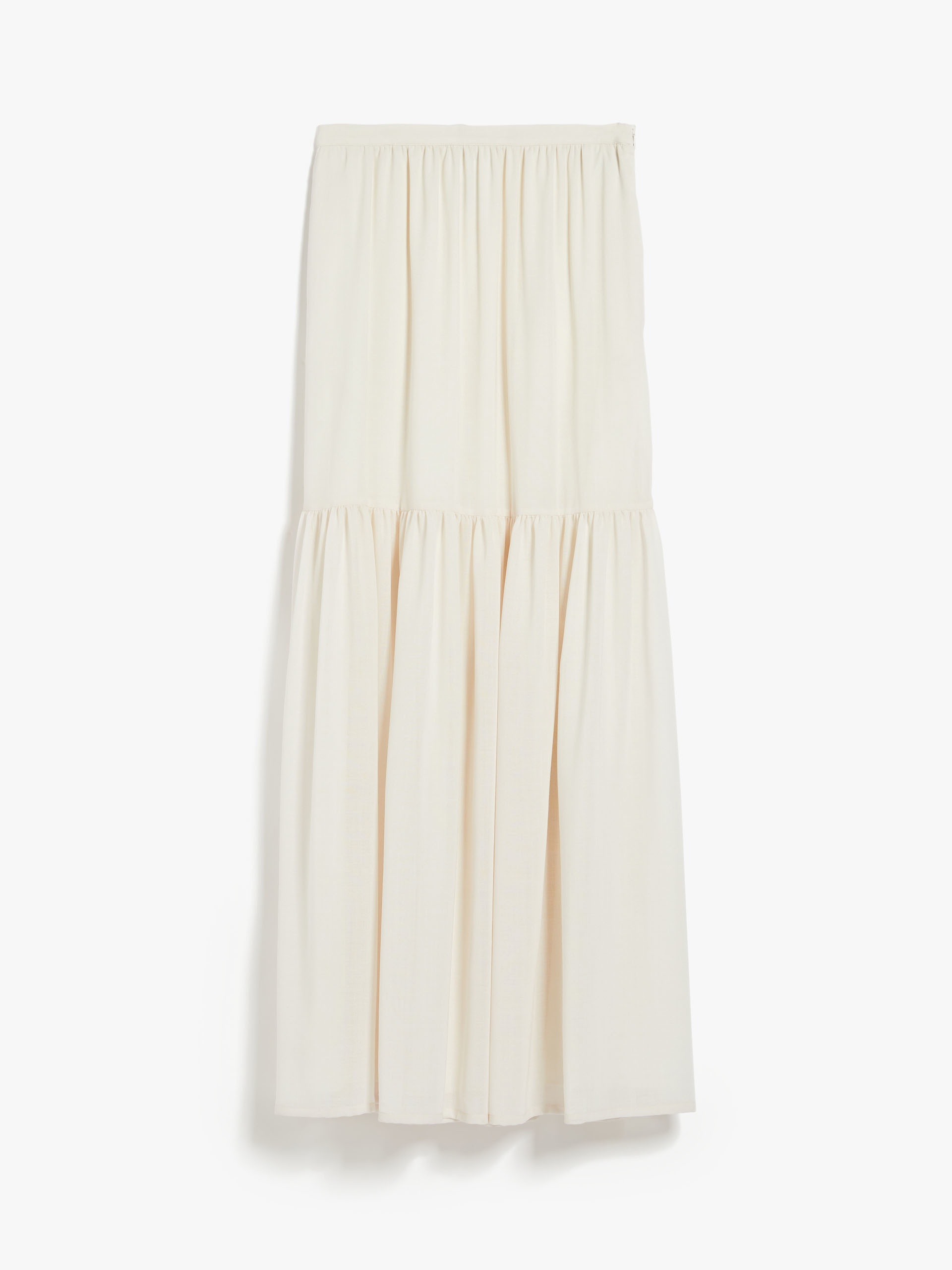 DETAILS Long skirt made of lightweight semi-sheer wool gauze. The fluid silhouette features a flounce at the hem that adds volume, and delicate gathering at the waist and on the horizontal seam. Lined and finished with inset side pockets and concealed side zip closure. COMPOSITION AND CARE Fabric 100% virgin wool; lining 85% acetate, 10% silk, 5% polyamide. Do not wash; do not bleach; do not tumble dry; cool iron; professionally dry clean perchloroethylene - mild process; do not wet clean. Distributed by Max Mara S.r.l., registered office in Reggio Emilia (Italy), Via Giulia Maramotti 4, 42124 (IT)
