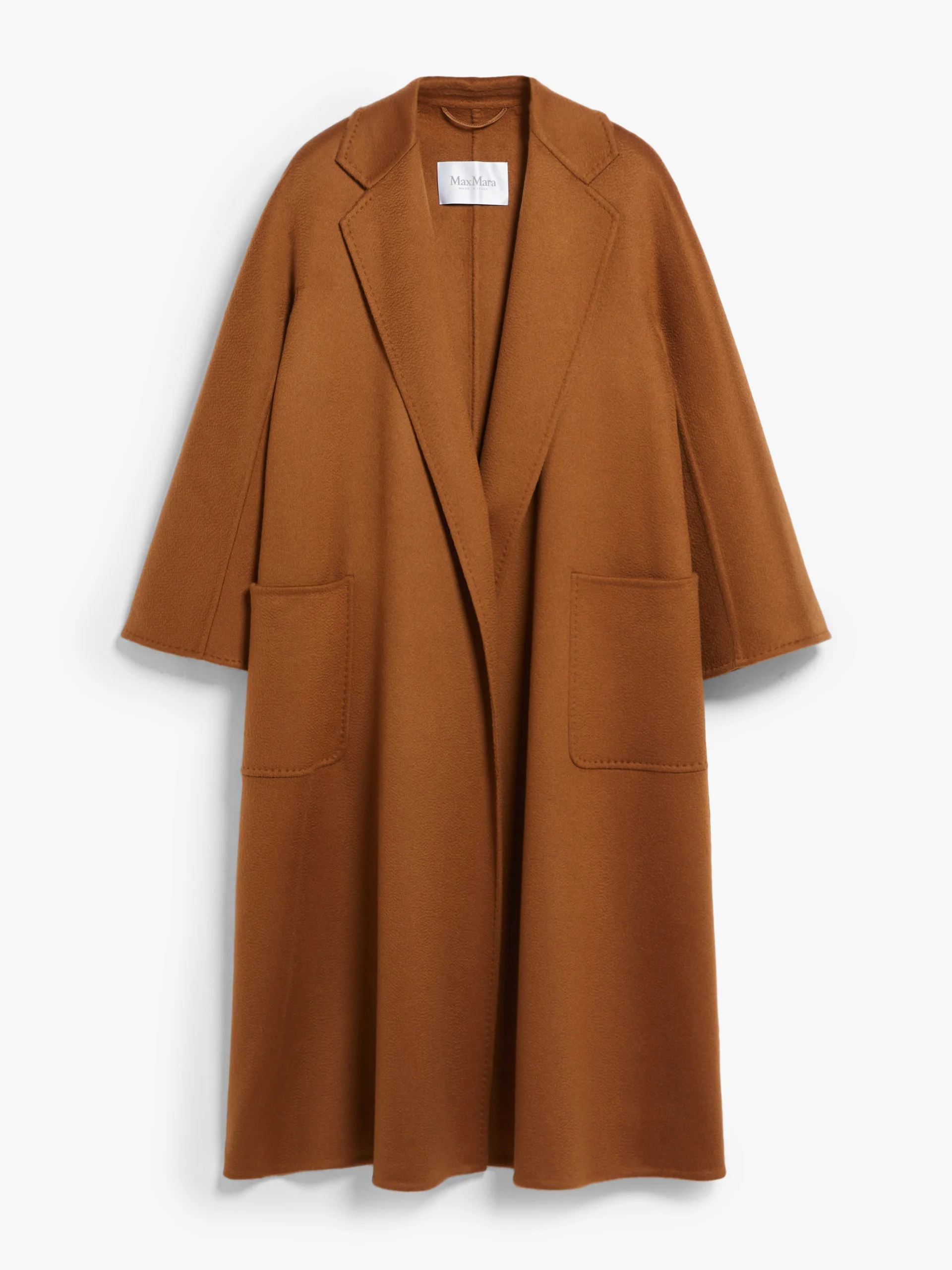 DETAILS A Max Mara wardrobe classic with a symbolic laid-back attitude that does not compromise on fabric luxuriousness or flawless attention to detail. First reinterpreted in 2016 and refreshed for every single collection since, this model is one of the Max Mara style icons. It is set apart by its comfort, wraparound fit which envelops the figure and can be customised via the matching belt. The kimono sleeves and large patch pockets attest to its subtle yet refined luxuriousness. Crafted from hand-sewn double-faced sable-look cashmere broadcloth Embellished with tailoring-style hand-stitched detail Lapel collar Kimono sleeves on the front, raglan sleeves at the back Patch pockets Matching belt Length: 120 cm/4.7 inches COMPOSITION AND CARE Fabric 100% cashmere; - except joining thread. Do not wash; do not bleach; do not tumble dry; cool iron; professionally dry clean perchloroethylene - mild process; do not wet clean. Distributed by Max Mara S.r.l., registered office in Reggio Emilia (Italy), Via Giulia Maramotti 4, 42124 (IT)