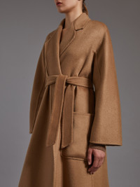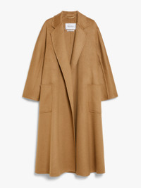 DETAILS A Max Mara wardrobe classic with a symbolic laid-back attitude that does not compromise on fabric luxuriousness or flawless attention to detail. First reinterpreted in 2016 and refreshed for every single collection since, this model is one of the Max Mara style icons. It is set apart by its comfort, wraparound fit which envelops the figure and can be customised via the matching belt. The kimono sleeves and large patch pockets attest to its subtle yet refined luxuriousness. Crafted from hand-sewn double-faced sable-look cashmere broadcloth Embellished with tailoring-style hand-stitched detail Lapel collar Kimono sleeves on the front, raglan sleeves at the back Patch pockets Matching belt Length: 120 cm/4.7 inches COMPOSITION AND CARE Fabric 100% cashmere; - except joining thread. Do not wash; do not bleach; do not tumble dry; cool iron; professionally dry clean perchloroethylene - mild process; do not wet clean. Distributed by Max Mara S.r.l., registered office in Reggio Emilia (Italy), Via Giulia Maramotti 4, 42124 (IT)