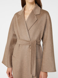 DETAILS A classic from the Max Mara wardrobe, a symbol of a laid-back allure that does not sacrifice luxurious fabrics and impeccable attention to detail. Reinterpreted in 2016 and reintroduced in all the collections since then, it is one of the iconic pieces of the Max Mara style. It stands out with its generous, enveloping silhouette that embraces the body, and can be customised thanks to the coordinated belt. The kimono sleeves and large patch pockets underline its understated, refined luxury. Made of hand-stitched double zibeline cashmere drap Embellished with tailored pick stitch Lapel collar Front kimono sleeves, raglan back sleeves Patch pockets Matching belt Length: 120 cm / 47 inches COMPOSITION AND CARE Fabric 100% cashmere; - except joining thread. Do not wash; do not bleach; do not tumble dry; cool iron; professionally dry clean perchloroethylene - mild process; do not wet clean. Distributed by Max Mara S.r.l., registered office in Reggio Emilia (Italy), Via Giulia Maramotti 4, 42124 (IT)