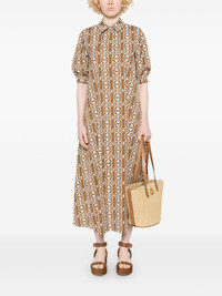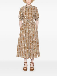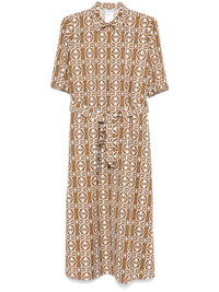 Luxgi maxi dress Highlights - Tobacco brown - Concealed front button fastening - Tied waist - Short sleeves - Two side slit pockets Made in Italy Composition Cotton 100% SIZE & FIT Model measurements Height 5 ft 9 in(1.75 m) Bust/Chest 34.64 in(88 cm) Hips 36.61 in(93 cm) Waist 26.37 in(67 cm) FittingInformation Designed to be unstructured, offering a loose fit throughout The adjustable tie waist gives a more adaptable and personalised fit Made from a midweight non-stretch fabric