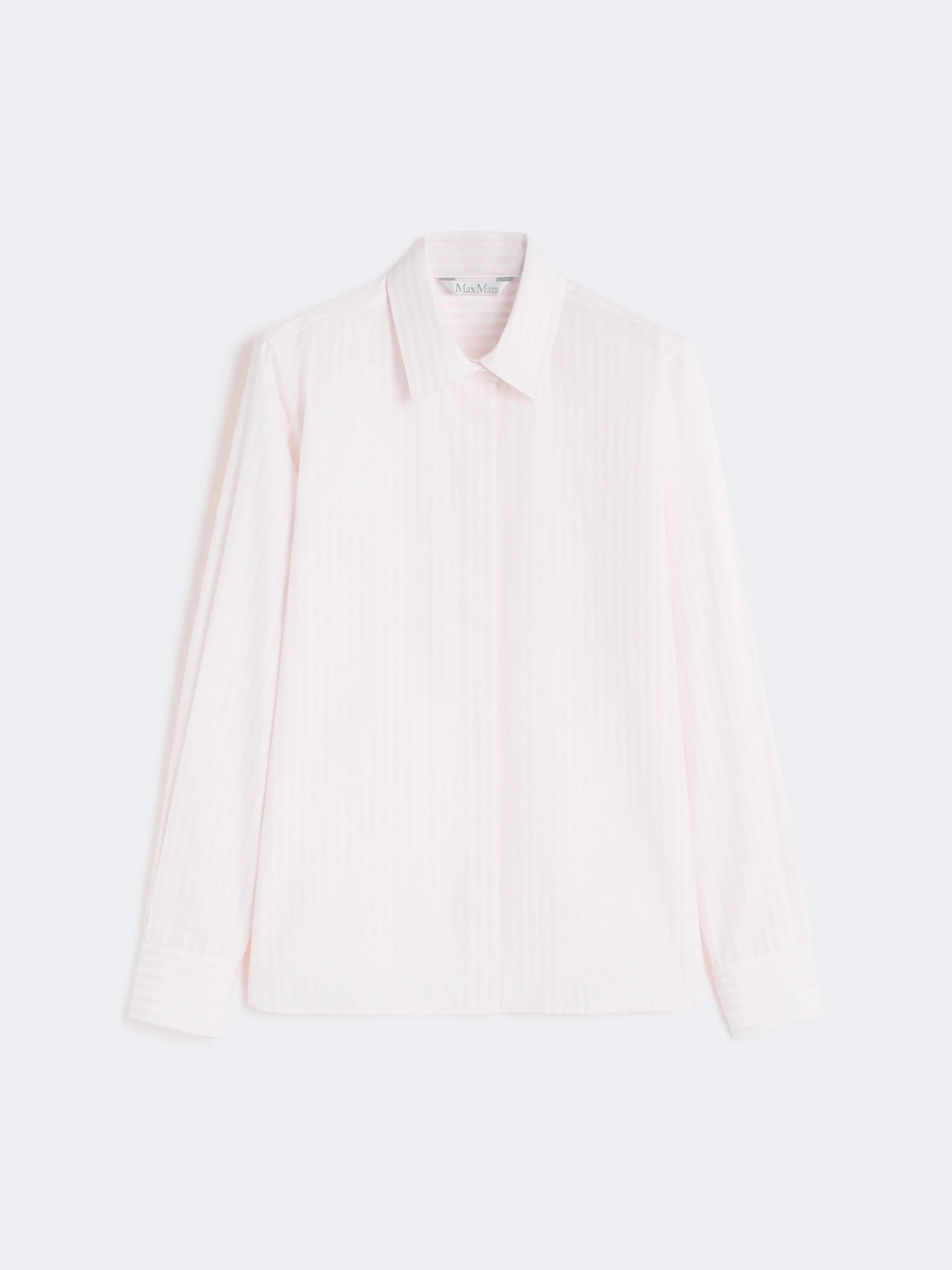DETAILS Mannish-style shirt. - Striped pure cotton poplin shirt - Regular fit - Shirt collar and set-in sleeves with shirt cuffs - Shirt cuff with metal “M” rivet - Concealed button fastening on the front - Darted yoke and a central pleat at the back - Rounded hem with side slits COMPOSITION AND CARE 100% cotton. Machine wash cold delicate cycle; do not bleach; do not tumble dry; line drying in the shade; cool iron; professionally dry clean perchloroethylene - mild process.; put this item into a string bag before washing it.; wash the garment while it is fastened.; protect buttons before washing.; turn the articles inside out before washing.; contains non-textile parts of animal origin. Distributed by Max Mara S.r.l., registered office in Reggio Emilia (Italy), Via Giulia Maramotti 4, 42124 (IT) Collection: Max Mara Product code: 1111116106001 - MXMACCENNI