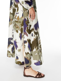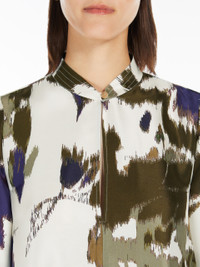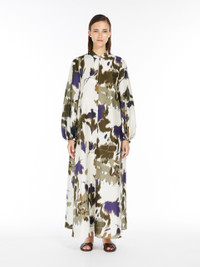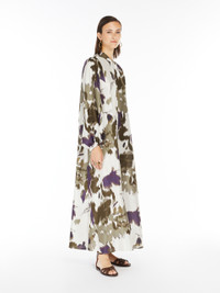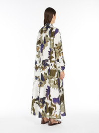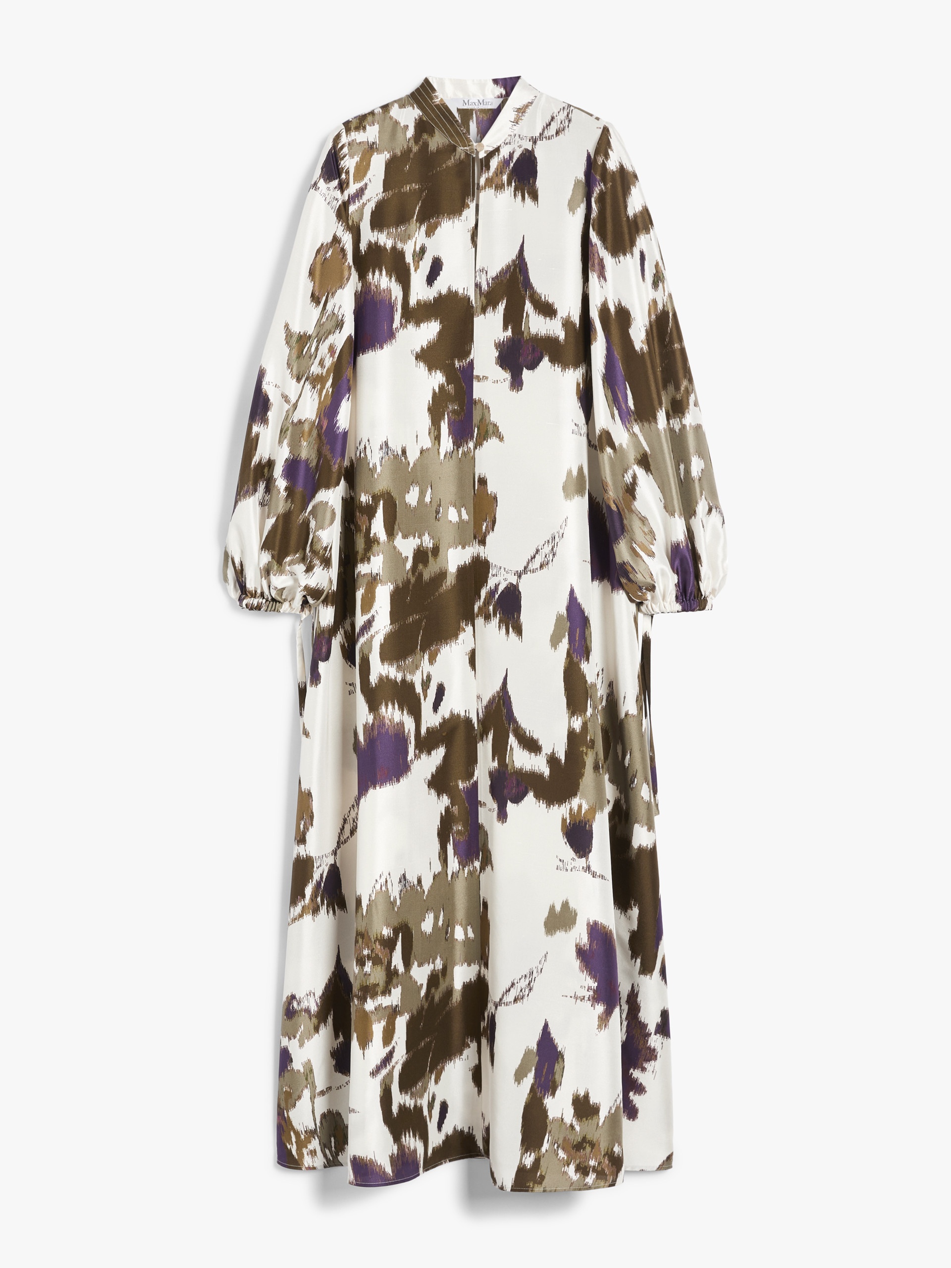 DETAILS Long shirt dress made of exquisite pure shantung silk with an all-over printed motif. Unlined style with a relaxed fit, mandarin collar, long sleeves with stretch drawstring cuffs and deep side slits at the hem. Front closure with a teardrop motif, button and small buttonhole. COMPOSITION AND CARE 100% silk. Do not wash; do not bleach; do not tumble dry; cool iron; professionally dry clean perchloroethylene - mild process; do not wet clean.; wash the garment while it is fastened.; do not iron the buttons.; protect buttons before washing.; turn the articles inside out before washing.; contains non-textile parts of animal origin. Distributed by Max Mara S.r.l., registered office in Reggio Emilia (Italy), Via Giulia Maramotti 4, 42124 (IT)