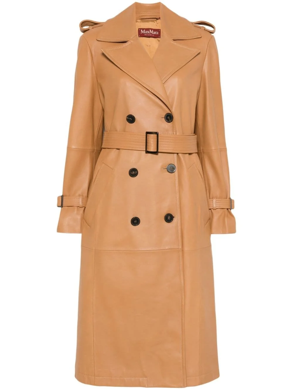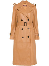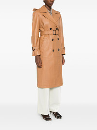 Magiaro coat Highlights - Cognac brown - Lambskin - Smooth grain - Panelled design - Double-breasted button fastening - Wide notch lapels - Epaulettes - Shoulder pads - Long sleeves - Belted cuffs - Detachable waist belt - Two side welt pockets - Central rear vent - Satin lining - Straight hem - Mid-length Imported Composition Outer: Lamb Skin 100% Lining: Polyester 100% SIZE & FIT Model measurements Height 5 ft 10 in(1.78 m) Bust/Chest 31.49 in(80 cm) Hips 37 in(94 cm) Waist 23.62 in(60 cm) FittingInformation Designed to be unstructured, offering a loose fit throughout The belt offers adjustability for fitted preferences Soft leather has a supple and smooth construction offering some flexibility Washing instructions Specialist Cleaning