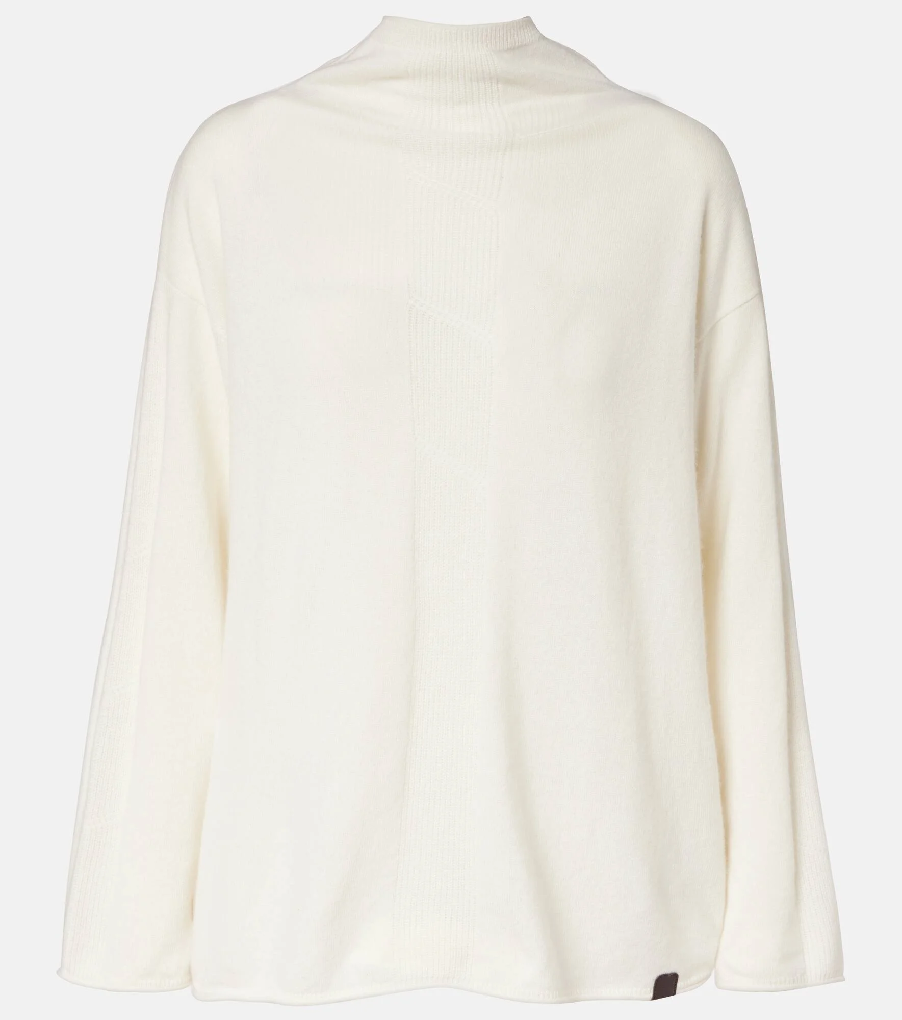 Max Mara's unparalleled expertise and Italian craftsmanship are on display with the Mantide sweater. Made from pure cashmere, the design is complete with a cozy turtleneck and ribbed-knit panels along the center and the sleeves. Product Details - Material: 100% cashmere - Care instructions: hand wash - Made in China - Color: white - Designer color name: Ivory - Item color: white - Contains non-textile parts of animal origin - Includes: dust bag - Item number: P01124892 Size & Fit - True to size - Dropped shoulders - Designed for a loose fit - Slightly stretchy fabric - Falls below the hip - The model seen in the picture is 178cm-5'10" and wearing a size XS