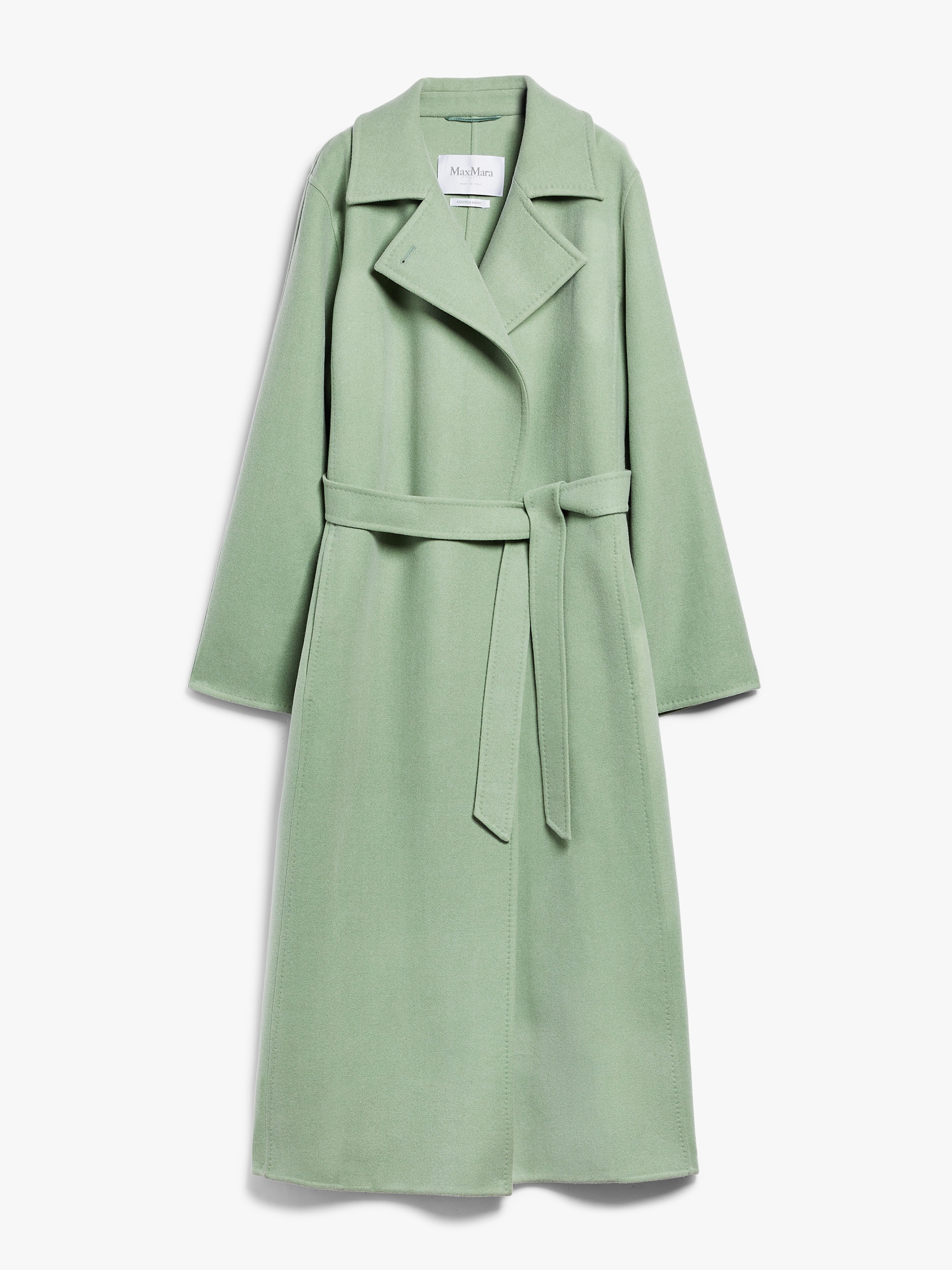 DETAILS Since 1998, the Manuela wrap coat in pure zibeline cashmere designed by Anne-Marie Beretta has been telling the story of Max Mara. A story about a passion for quality and laid-back luxury to wear every day. Now considered an icon, the style transcends the seasons to become timeless. - Crafted in lightweight double wool and cashmere - Straight cut - Embellished with tailored pick stitch - Wide lapel collar with double-use button - Shirt-style armholes with kimono sleeves - Inset pockets in the side slits - Matching belt - Branded lining - Length: 130 cm / 51 inches COMPOSITION AND CARE Fabric 90% virgin wool, 10% cashmere; - except joining thread. Do not wash; do not bleach; do not tumble dry; cool iron; professionally dry clean perchloroethylene - mild process; do not wet clean.; do not iron the buttons. Distributed by Max Mara S.r.l., registered office in Reggio Emilia (Italy), Via Giulia Maramotti 4, 42124 (IT)