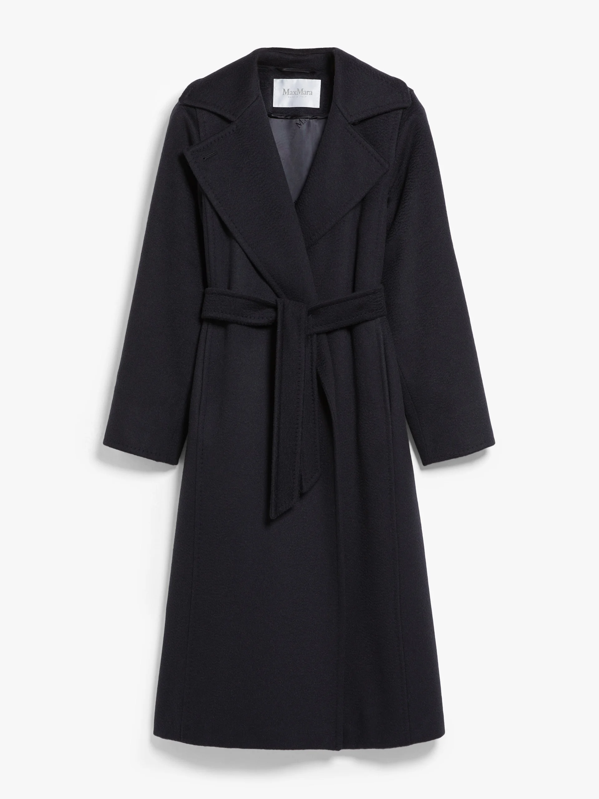 DETAILS Since 1998, the Manuela robe coat, crafted from sable-look pure camel fabric and designed by Anne-Marie Beretta, has epitomised Max Mara's passion for everyday-suitable quality and laid-back luxury. The by-now iconic model is both seasonless and timeless. Made from sable-look pure camel broadcloth Straight fit Embellished with tailoring-style hand-stitched detail Wide lapel collar with a 2-in-1 button Shirt-style armholes with a kimono sleeve cut Side dart-inset pockets Matching belt Branded lining Length: 115 cm/4.5 inches COMPOSITION AND CARE Fabric 100% camelwool; lining 100% viscose. Do not wash; do not bleach; do not tumble dry; cool iron; professionally dry clean perchloroethylene - mild process; do not wet clean. Distributed by Max Mara S.r.l., registered office in Reggio Emilia (Italy), Via Giulia Maramotti 4, 42124 (IT)