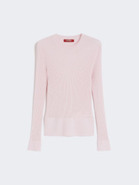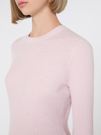 DETAILS Slim fit jumper, embellished with micro sequin embroidery. Silk and wool yarn jumper Figure-hugging Crew neck Long fitted sleeves Wide, ribbed trim COMPOSITION AND CARE Knitted fabric 55% silk, 45% wool; hems 43% silk, 36% wool, 19% polyamide, 2% elastane; - exclusive of decoration. Hand wash cold (40°c max); do not bleach; do not tumble dry; flat drying in the shade; cool iron; professionally dry clean perchloroethylene - mild process; do not wet clean.; iron with a cloth between.; using neutral detergent. Distributed by Max Mara S.r.l., registered office in Reggio Emilia (Italy), Via Giulia Maramotti 4, 42124 (IT)