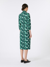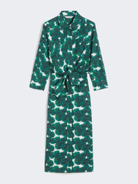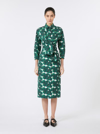 DETAILS Midi shirt dress with sashes that tie at the waist to accentuate the silhouette. - Printed pure cotton poplin dress - Fitted - Classic shirt collar - Three-quarter sleeves with cuff and logo button - Concealed front fastening that runs the length of the garment - Back yoke cut COMPOSITION AND CARE 100% cotton. Machine wash cold delicate cycle; do not bleach; do not tumble dry; line drying in the shade; cool iron; professionally dry clean perchloroethylene - mild process.; wash the garment while it is fastened.; do not iron the buttons.; protect buttons before washing.; turn the articles inside out before washing. Distributed by Max Mara S.r.l., registered office in Reggio Emilia (Italy), Via Giulia Maramotti 4, 42124 (IT)