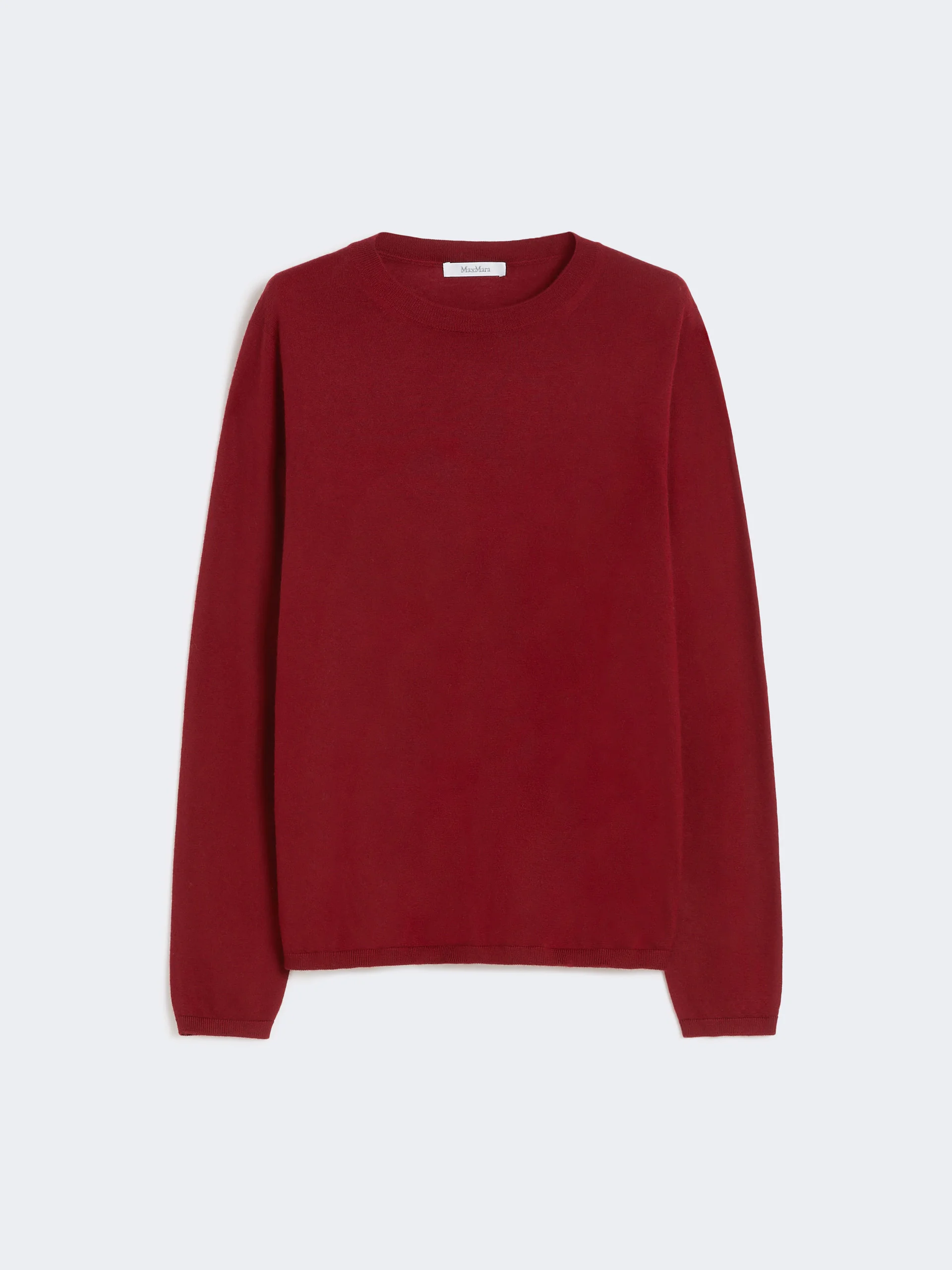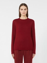 DETAILS Basic seamless jumper, ideal worn under a jacket. Featherlight, pure cashmere plain-knit jumper Regular fit Crew neck Long set-in sleeves Straight hem Ribbed edges COMPOSITION AND CARE Knitted fabric 100% cashmere; - except joining thread. Hand wash cold (40°c max); do not bleach; do not tumble dry; flat drying in the shade; cool iron; professionally dry clean perchloroethylene - mild process; do not wet clean.; using neutral detergent.; iron with a cloth between. Distributed by Max Mara S.r.l., registered office in Reggio Emilia (Italy), Via Giulia Maramotti 4, 42124 (IT)