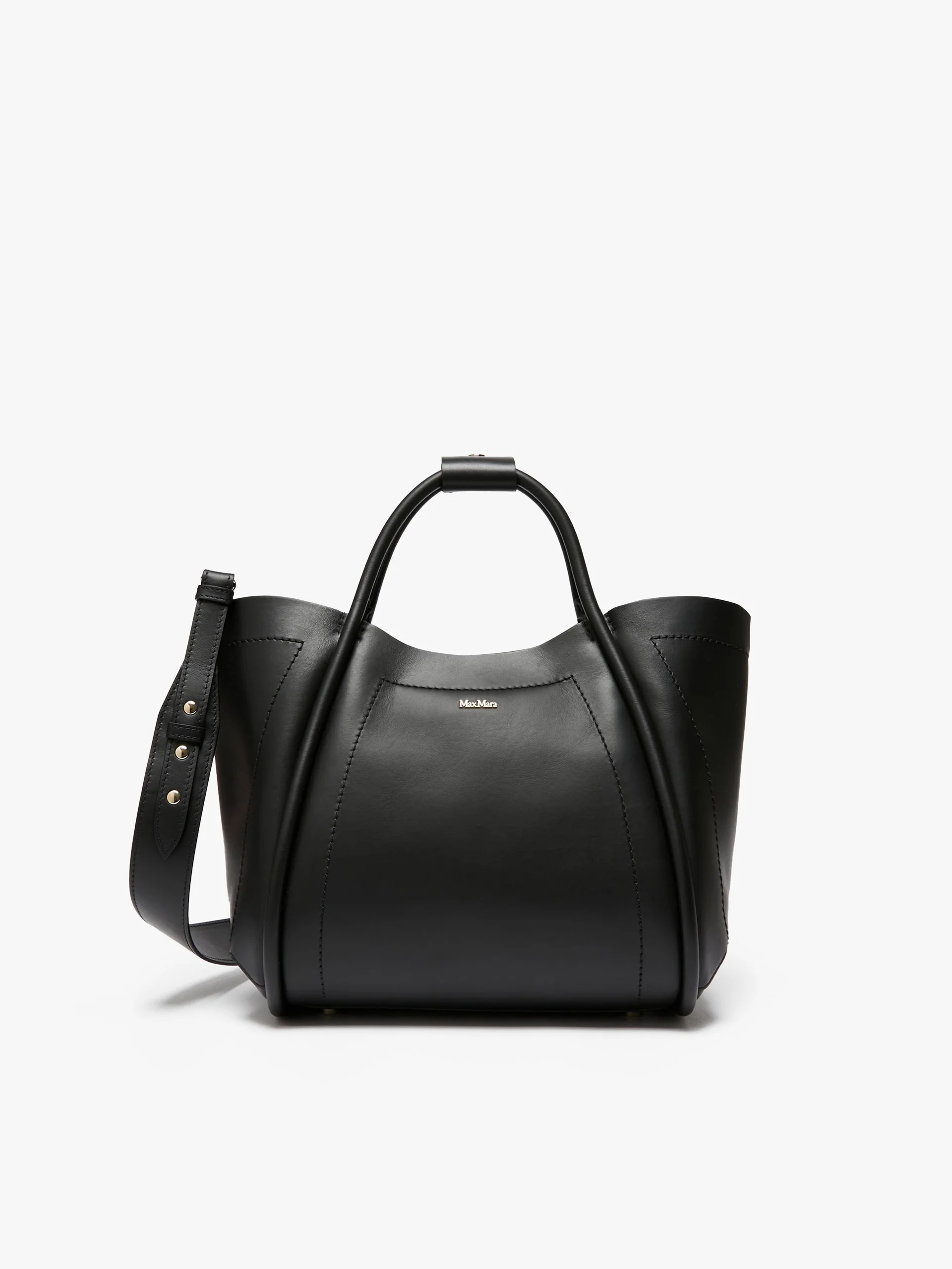 DETAILS Marine handbag featuring a rounded shape and versatile dimensions, thanks to the strap-securing extendable sides and split ring on the inside. Smooth calfskin bag Soft-textured fabric interior and a zipped pocket Tubular handles with loop detail and a removable and adjustable shoulder strap The internal split ring (for adding charms) and the pouch are sold separately Max Mara lettering on the front and 5 metal bag feet Magnetic snap fastening at the top Size: 37 x 22 x 24 cm COMPOSITION AND CARE Handbag in cattle; lining in 60 nylon, 40 polyurethane. Distributed by Max Mara S.r.l., registered office in Reggio Emilia (Italy), Via Giulia Maramotti 4, 42124 (IT)