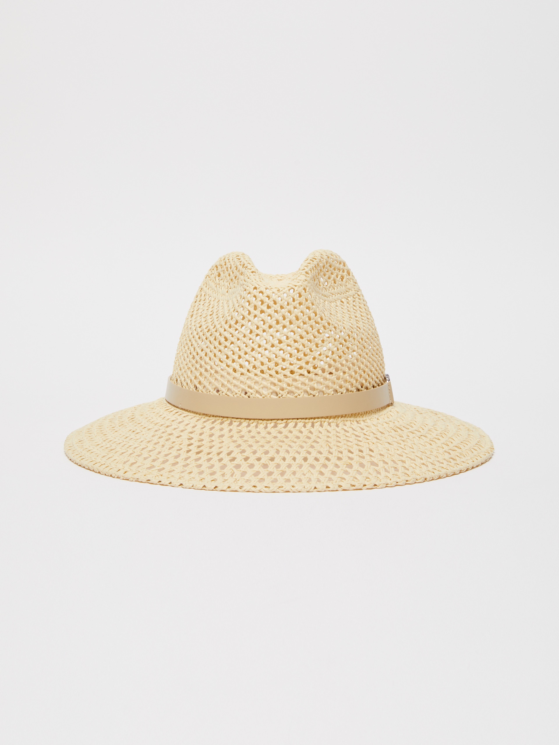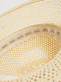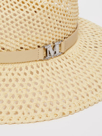 DETAILS Paper yarn hat featuring an all-over open-knit pattern. The wide-brimmed model boasts a tonal leather band, complete with metal M Monogram detail. COMPOSITION AND CARE Style in paper; swearband 60% cotton, 40% acetate; with details in cattle, metal. Do not wash; do not bleach; do not tumble dry; do not iron; do not dry clean; do not wet clean. Distributed by Max Mara S.r.l., registered office in Reggio Emilia (Italy), Via Giulia Maramotti 4, 42124 (IT)
