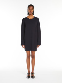 DETAILS Short dress in viscose crepe interlock knit fabric featuring a crew neckline and long low set-in sleeves. The comfort-fit model boasts underarm darts that can be worn open for a looser fit or closed via the press stud at the cuff. COMPOSITION AND CARE 65% viscose, 35% polyamide. Hand wash cold; do not bleach; do not tumble dry; flat drying in the shade; cool iron; professionally dry clean perchloroethylene - mild process; do not wet clean.; iron with a cloth between.; using neutral detergent. Distributed by Max Mara S.r.l., registered office in Reggio Emilia (Italy), Via Giulia Maramotti 4, 42124 (IT)