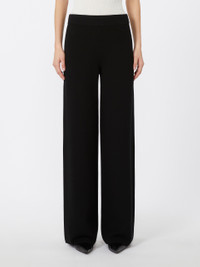 DETAILS Long trousers featuring a straight cut that flares slightly at the hem. Linen-knit stretch viscose yarn trousers Relaxed fit Elasticated waistband COMPOSITION AND CARE 72% viscose, 28% polyester. Hand wash cold; do not bleach; do not tumble dry; flat drying in the shade; cool iron; professionally dry clean perchloroethylene - mild process; do not wet clean.; iron with a cloth between.; using neutral detergent. Distributed by Max Mara S.r.l., registered office in Reggio Emilia (Italy), Via Giulia Maramotti 4, 42124 (IT)