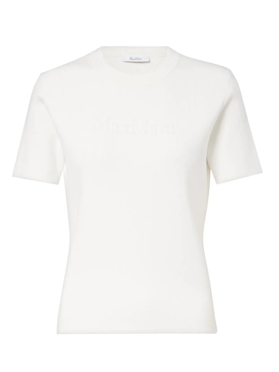 Adelio crepe T-shirt with logo Crewneck sweater, personalized with 3D Max Mara lettering in relief on the front. The main fabric of this garment contains raw materials derived from wood cellulose, a fiber obtained in accordance with forestry regulations. Viscose crepe sweater Semi-fitted fit Ribbed crewneck Short set-in sleeves Color: WHITE Gender: Women Material: VISCOSE Color: WHITE Made in: Italy Product ID: 95857 2521366068600 95284 *Import tax/duty will be calculated at checkout (If applicable)