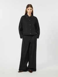 DETAILS Overshirt jacket, featuring iconic denim details: vintage-effect metal logo tack buttons and tan-coloured stitching. - Cotton blend, denim-effect jersey jacket - Oversized line with cropped cut - Shirt collar, kimono sleeves with buttoned cuffs - Fastened with metal tack buttons. - Welt pockets on the sides and strap adjusters at the back waist - Yoke seam with stitching that continues onto the sleeves - Unlined COMPOSITION AND CARE 57% cotton, 36% polyester, 7% elastane. Machine wash cold delicate cycle; do not bleach; do not tumble dry; flat drying in the shade; cool iron; professionally dry clean perchloroethylene - mild process; professional wet cleaning - very mild process.; iron with a cloth between.; using neutral detergent.; turn the articles inside out before washing.; to be ironed on reverse. Distributed by Max Mara S.r.l., registered office in Reggio Emilia (Italy), Via Giulia Maramotti 4, 42124 (IT) Collection: Max Mara Product code: 1911036806002 - MXPNETTARE