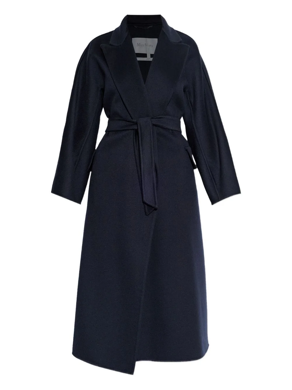 belted coat Highlights - Dark blue - Notched lapels - Belt - Long sleeves - Front patch pocket - Wrap design Made in Italy Composition Cashmere 100% Washing instructions Read Manufacturer Guidelines