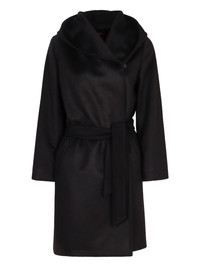 Newmang hooded belted coat Highlights - Black - Virgin wool - Hooded design - Belted waist - Single button fastening - Wrap-effect front Made in Italy Composition Virgin Wool 100% Washing instructions Read Manufacturer Guidelines