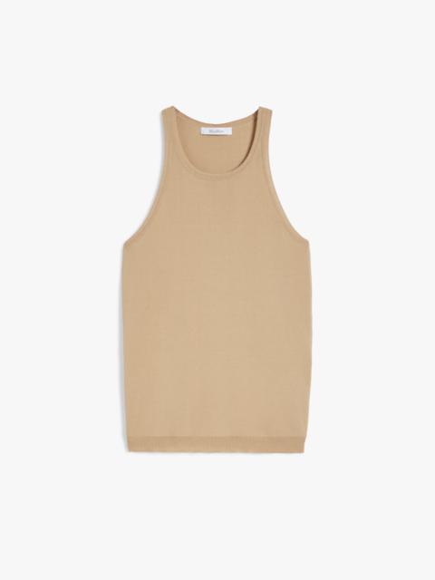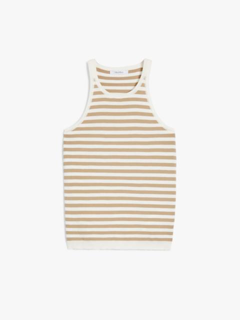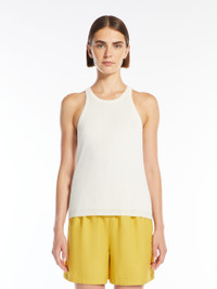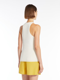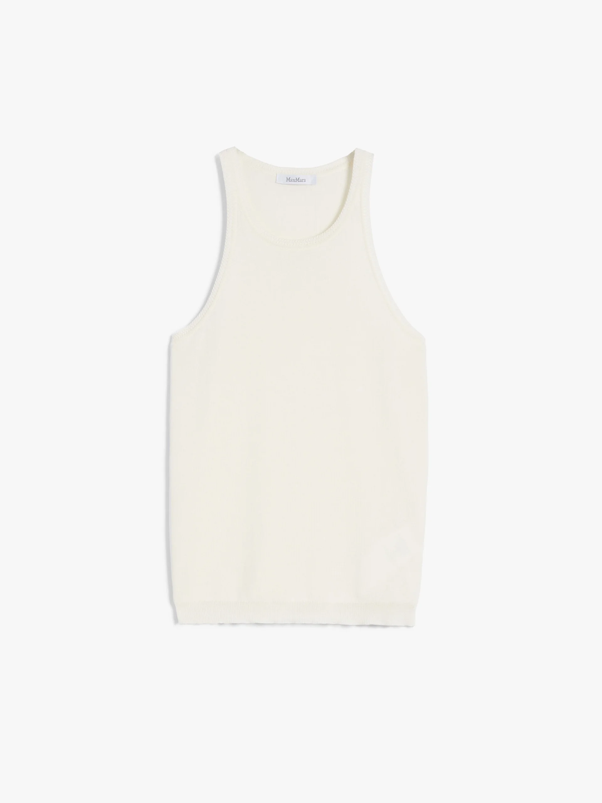 DETAILS Sleeveless top in pure cotton yarn. Halterneck style, finished with decorative stitch profiles and ribbed edge at the hem. COMPOSITION AND CARE 100% cotton. Hand wash cold; do not bleach; do not tumble dry; flat drying in the shade; cool iron; professionally dry clean perchloroethylene - mild process; do not wet clean.; iron with a cloth between.; using neutral detergent. Distributed by Max Mara S.r.l., registered office in Reggio Emilia (Italy), Via Giulia Maramotti 4, 42124 (IT)