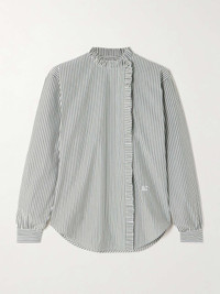 Didy logo-embroidered ruffled striped cotton-blend poplin shirt