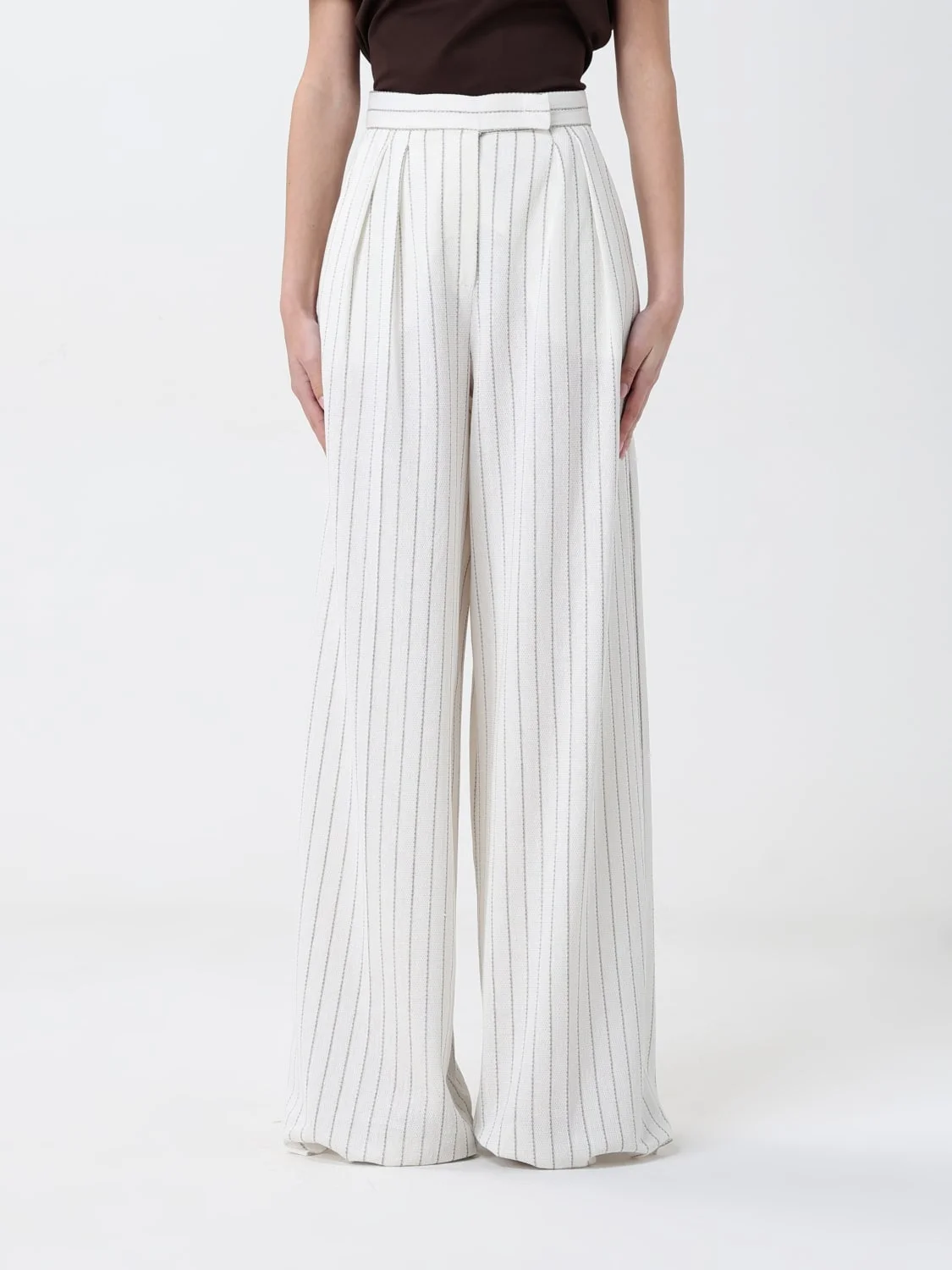 DESCRIPTION - Style: Casual - Closure: With button and zip - Pockets: America - Waist: High waist - Bottom: With straight hemline - Materials: Linen blend - Pattern: Stripes DETAILS AND CARE Composition 62% cotton, 38% flaxlinen SIZE AND FIT Sizes not available Size and fit Regular fit Designer code: 2511781022600 001 Giglio Code: G81184 Designer: Max Mara Collection: Max Mara Woman Category: Clothing Max Mara