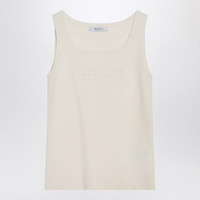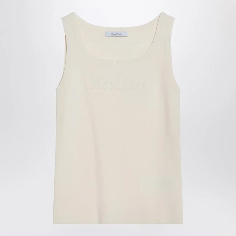 Ivory viscose crepe sleeveless top from Max Mara featuring a fitted shape, a round neckline, small shoulder straps, a raised logo print to the front and ribbed trims. Gender: Women Material: 65% Viscose - 35% Polyamide Color: WHITE Made in: Imported Product ID: PENTOLACO/Q_MAXM-001 *Import tax/duty will be calculated at checkout (If applicable)