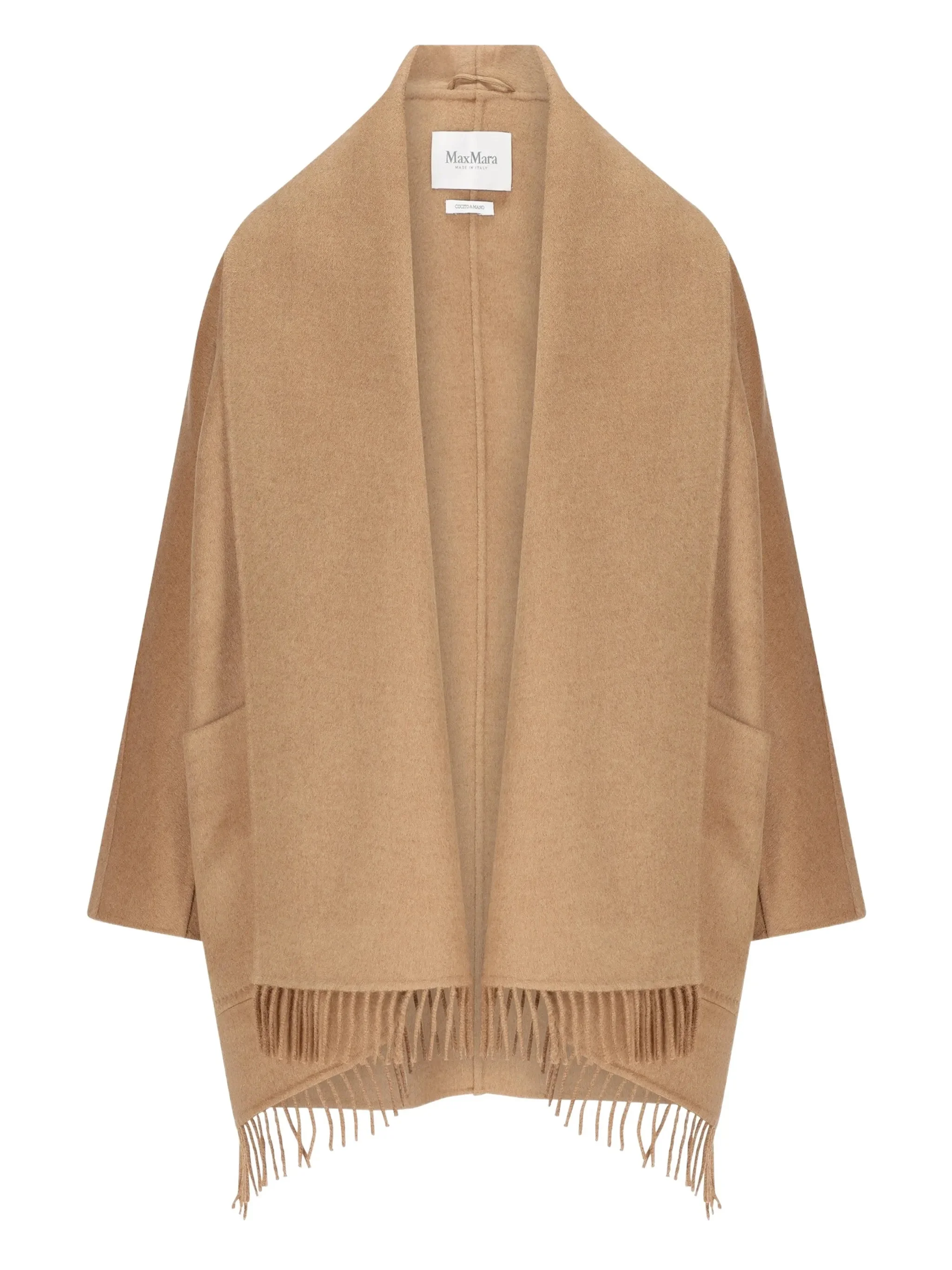 light brown fringed hem shawl lapels open front wide sleeves front pockets - Color: NEUTRALS - Made in: Bangladesh - Designer Style ID: MXMABILITA 611 001 Composition and care Camel Hair: 100.0%