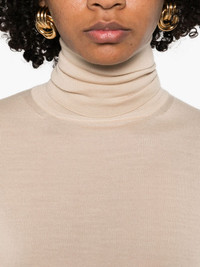 wool blend knitted top Highlights - Beige - Wool blend - Roll neck - Long sleeves - Ribbed cuffs and hem Imported Composition Wool 85%, Silk 15% SIZE & FIT Model measurements Height 5 ft 11 in(1.8 m) Bust/Chest 30.7 in(78 cm) Hips 35.23 in(89.5 cm) Waist 25.19 in(64 cm) Washing instructions Read Manufacturer Guidelines