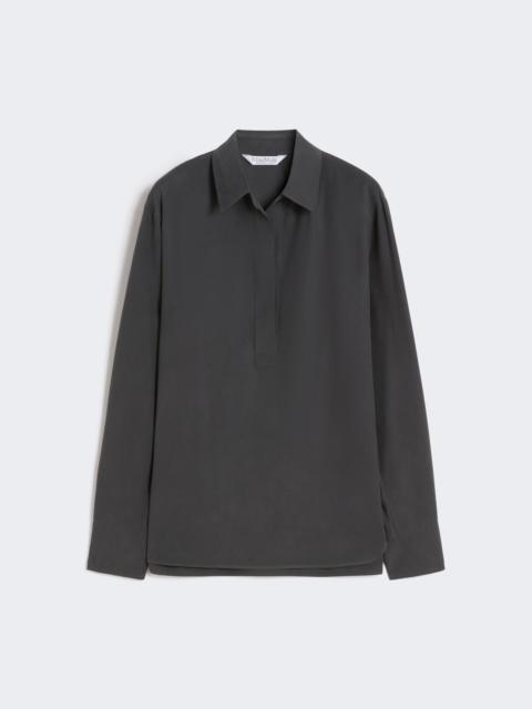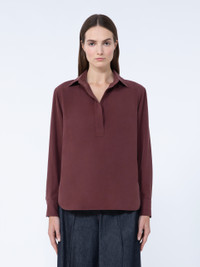 DETAILS Polo-style shirt with rounded hem, slightly longer at the back. Washed, pure silk canvas shirt Loose fit Open polo-shirt collar Long sleeves with shirt-style cuffs Rounded side slits COMPOSITION AND CARE 100% silk. Do not wash; do not bleach; do not tumble dry; cool iron; professionally dry clean perchloroethylene - mild process; do not wet clean.; wash the garment while it is fastened.; do not iron the buttons.; protect buttons before washing.; turn the articles inside out before washing. Distributed by Max Mara S.r.l., registered office in Reggio Emilia (Italy), Via Giulia Maramotti 4, 42124 (IT)