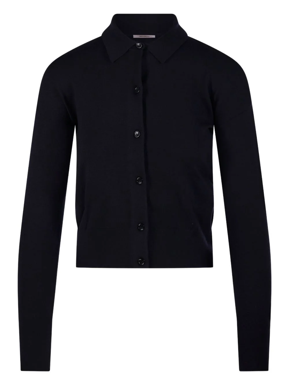 buttoned collared cardigan Highlights - Navy blue - Button fastening - Collared - Long sleeves Made in Italy Composition Fabric 100% Washing instructions Read Manufacturer Guidelines