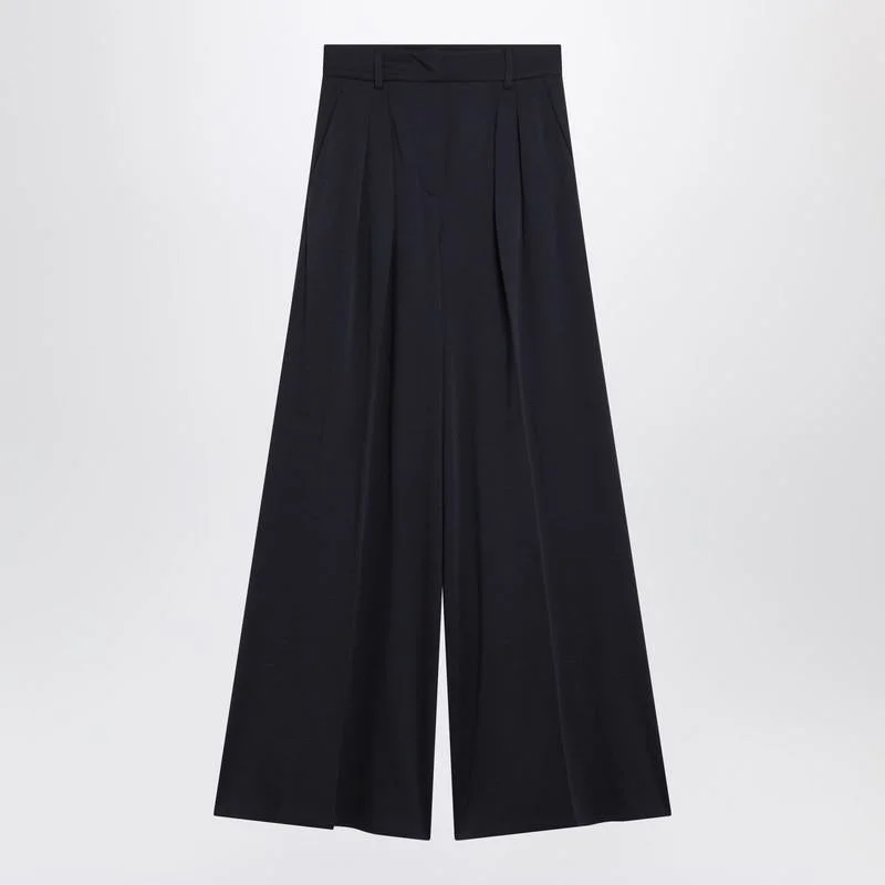 Palazzo trousers by Max Mara in navy pure wool jersey, featuring double front pleats, wide leg, high-waistband tab closure, zip fly with hook, side slant pockets, back welt pockets, and belt loops. Gender: Women Material: 100% Lana Color: BLUE Made in: Italy Product ID: NATALEWO/R_MAXM-004 *Import tax/duty will be calculated at checkout (If applicable)
