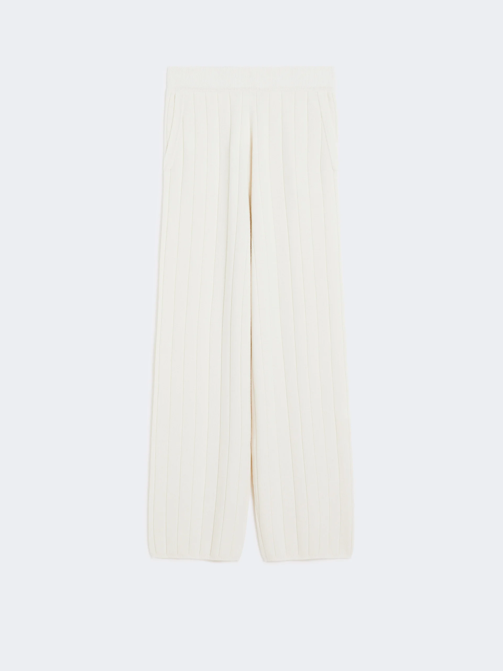 DETAILS Joggers-style trousers in an all-over wide-rib knit. Pure cashmere yarn trousers Relaxed-fit, slightly tapered towards the hem Elasticated waist Slant pockets at the sides Elastic ankle cuff Ribbed edges COMPOSITION AND CARE 100% cashmere. Hand wash cold (40°c max); do not bleach; do not tumble dry; flat drying in the shade; cool iron; professionally dry clean perchloroethylene - mild process; do not wet clean.; iron with a cloth between.; using neutral detergent. Distributed by Max Mara S.r.l., registered office in Reggio Emilia (Italy), Via Giulia Maramotti 4, 42124 (IT)