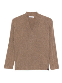 ribbed V-neck jumper Highlights - Brown - V-neck - Ribbed texture - Long sleeves Imported Composition Cashmere 100% SIZE & FIT Model measurements Height 5 ft 10 in(1.79 m) Bust/Chest 31.88 in(81 cm) Hips 35.43 in(90 cm) Waist 23.62 in(60 cm) Washing instructions Hand Wash