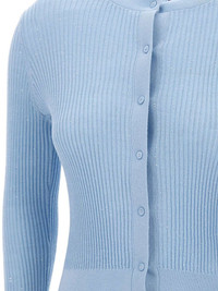 sequin-embellished ribbed cardigan Highlights - Blue - Micro sequins - Ribbed weave - Crew neckline - Long sleeves - Button fastening Imported Composition Silk 55%, Wool 45% Washing instructions Read Manufacturer Guidelines