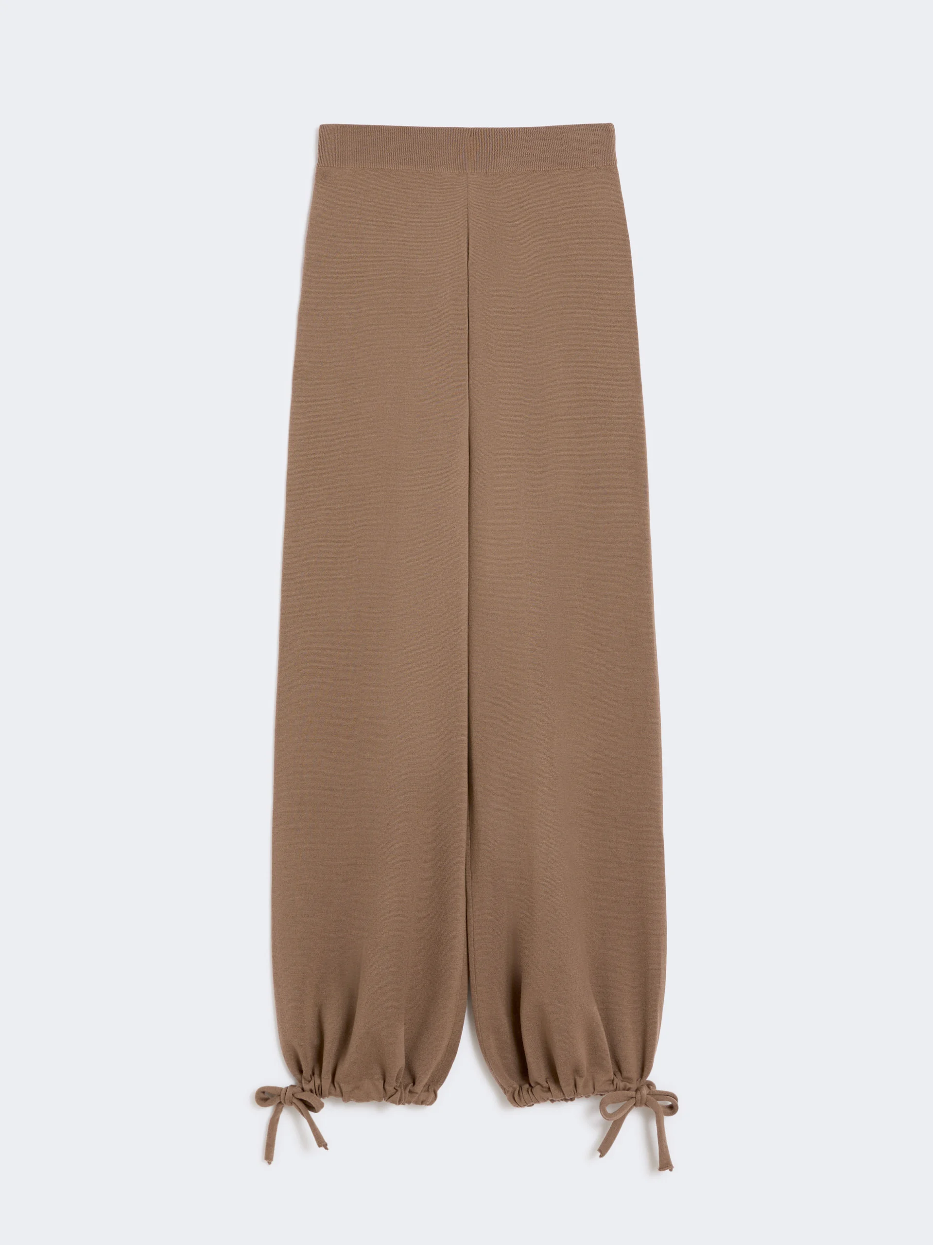 DETAILS Wide-leg trousers featuring drawstring detail at the hem. Trousers in full Milano-knit fine pure wool yarn Wide fit Ribbed elasticated waist Unlined model COMPOSITION AND CARE 100% virgin wool. Hand wash cold (40°c max); do not bleach; do not tumble dry; flat drying in the shade; cool iron; professionally dry clean perchloroethylene - mild process; do not wet clean.; iron with a cloth between.; using neutral detergent. Distributed by Max Mara S.r.l., registered office in Reggio Emilia (Italy), Via Giulia Maramotti 4, 42124 (IT)