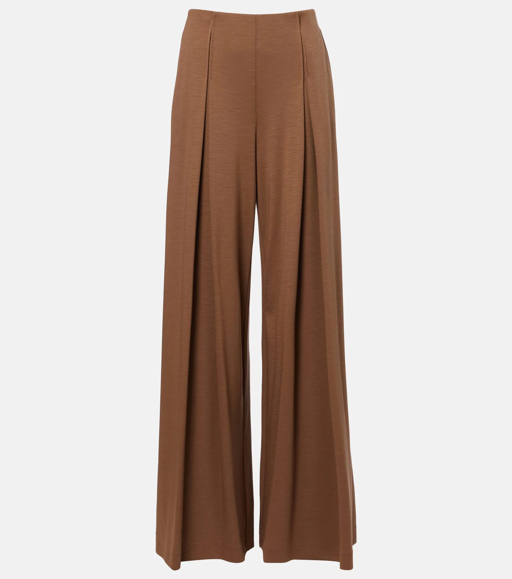 Boasting a rich manufacturing history, Max Mara represents the quintessence of Italian sophistication and expertise. The Cocco pants are crafted from fluid virgin wool to a wide-leg silhouette with deep front pleats. Product Details - Material: 100% virgin wool - Care instructions: hand wash - Made in Romania - Color: brown - Designer color name: Cuoio - Item color: brown - Closure: concealed zipped side - Elasticated waistband - Pockets: slant pockets - Item number: P01124896 Size & Fit - True to size - Elasticated waist - Slightly stretchy fabric - Wide-leg - The model seen in the picture is 178cm-5'10" and wearing a size XS