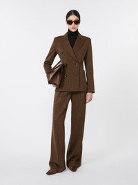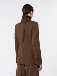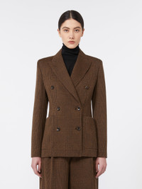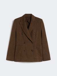 DETAILS Double-breasted blazer in Prince of Wales pattern with nods to men’s tailoring. Viscose and wool jersey blazer Slim-fit lines Collar with peak lapels Long sleeves with slit and buttoned cuffs Six-button fastening Patch pockets on the sides Partially lined COMPOSITION AND CARE Jersey fabric 53% cotton, 37% wool, 10% polyester; lining 65% acetate, 35% polyester. Do not wash; do not bleach; do not tumble dry; cool iron; professionally dry clean perchloroethylene - mild process; do not wet clean.; iron with a cloth between. Distributed by Max Mara S.r.l., registered office in Reggio Emilia (Italy), Via Giulia Maramotti 4, 42124 (IT)