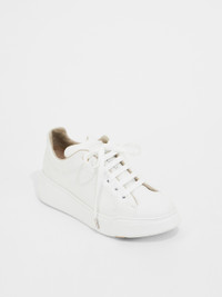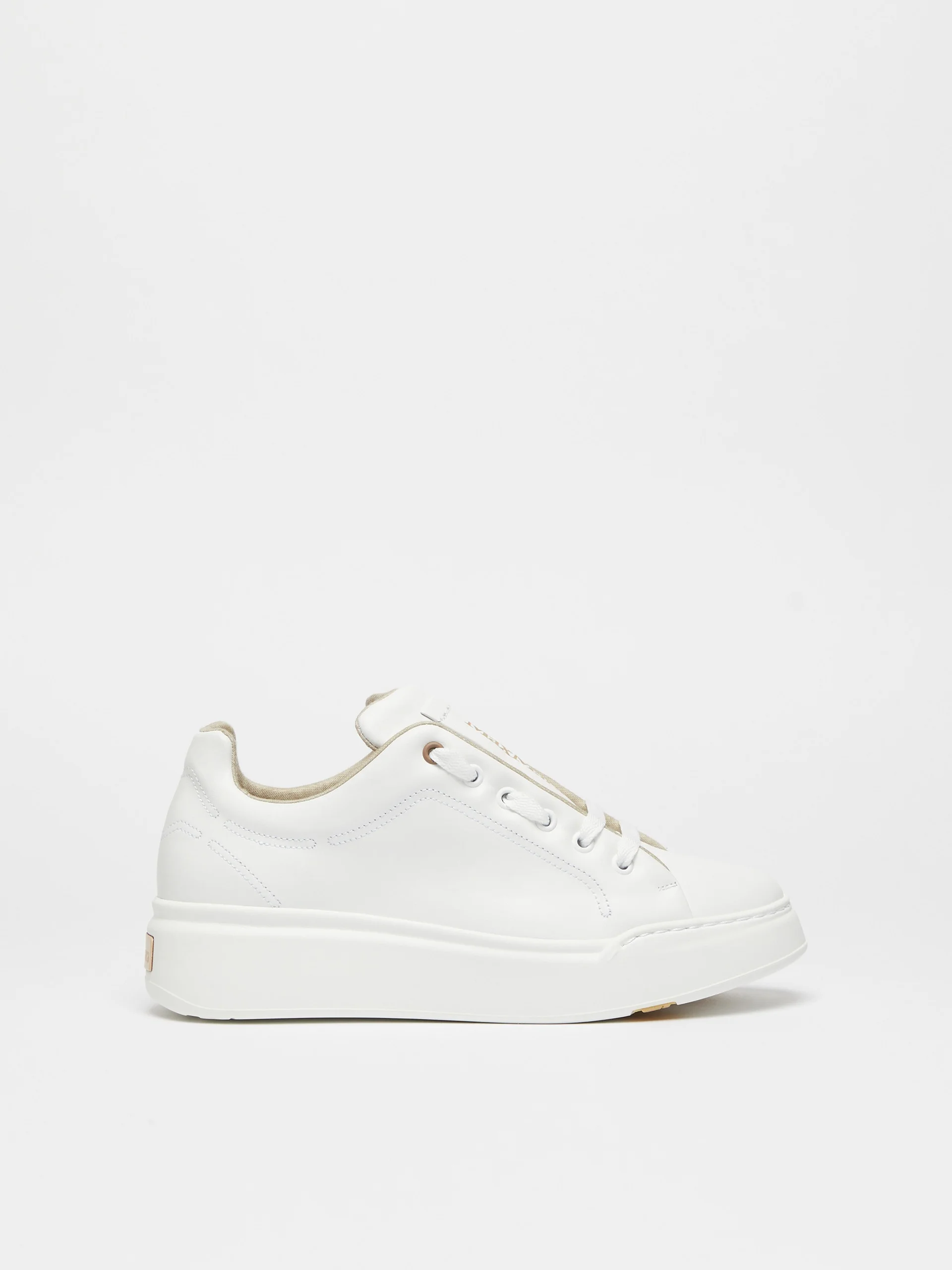 DETAILS Urban trainers with essential lines, with oversize leather label on the tongue. Trainers in soft smooth leather Interior in a cotton blend fabric Comfortable, high-performance internal footbed Rubber sole customised with oversized M Monogram Max Mara rubber label on the back of the heel COMPOSITION AND CARE Upper in cattle; lining in 72% cotton, 28% polyester; sole in rubber. Distributed by Max Mara S.r.l., registered office in Reggio Emilia (Italy), Via Giulia Maramotti 4, 42124 (IT)