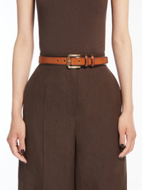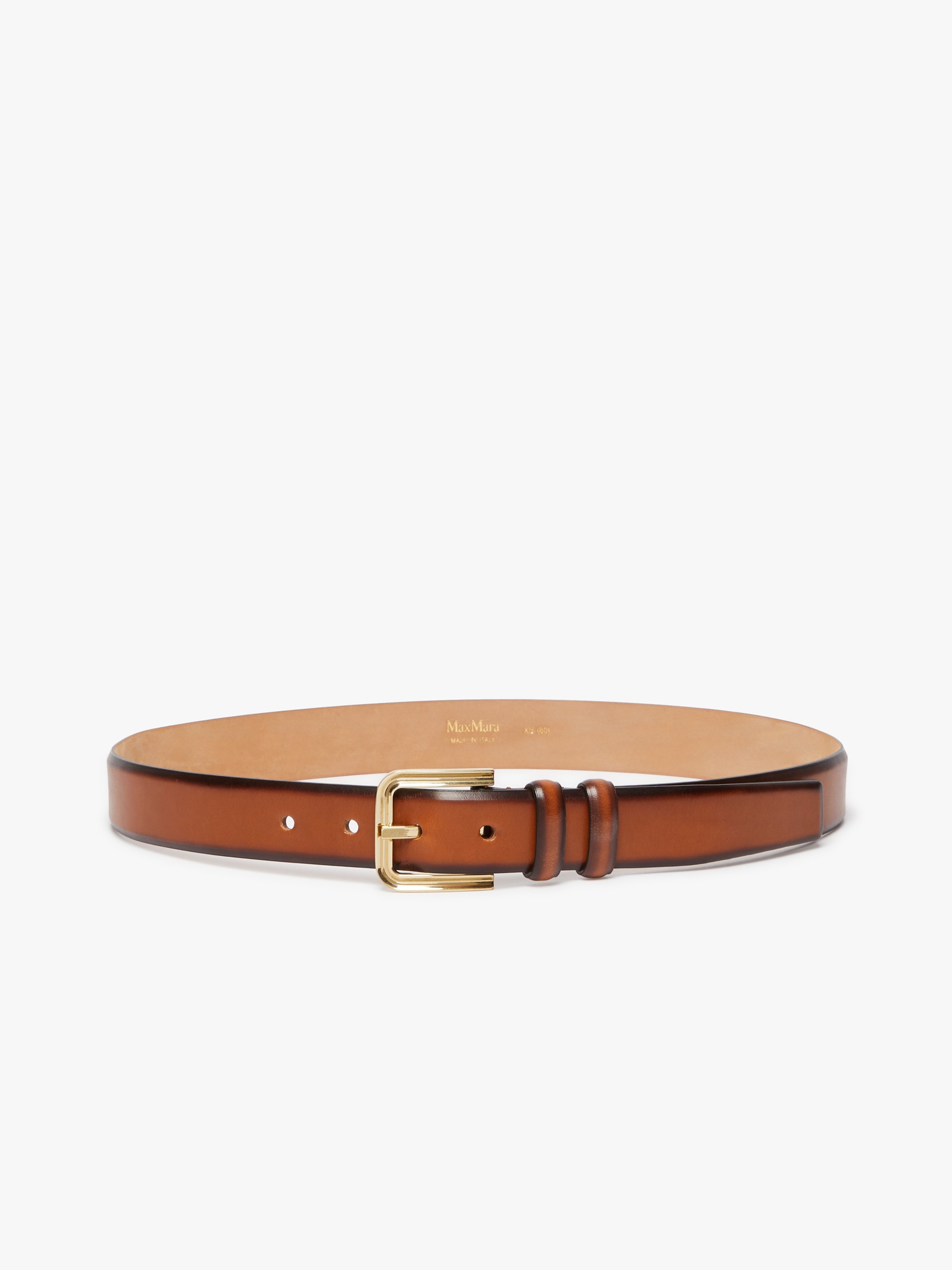 DETAILS Leather belt with a nuanced pattern that darkens towards the trims. The trouser-suitable model boasts a metal prong buckle and double loop detail. Width: 3 cm. The accessory comes in a Max Mara branded fabric dust bag. COMPOSITION AND CARE Material belt cattle; back cattle. Distributed by Max Mara S.r.l., registered office in Reggio Emilia (Italy), Via Giulia Maramotti 4, 42124 (IT)