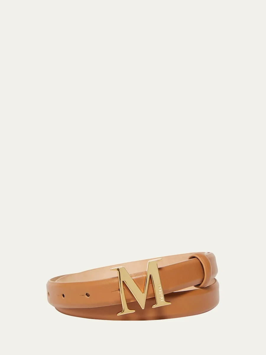 Max Mara "MClassic20" belt in leather Features golden metal hardware Adjustable fit Oversized monogram buckle Made in Italy