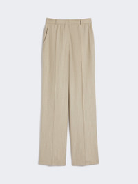 DETAILS Mannish-style straight-leg trousers. Trousers in patterned stretch wool flannel fabric Straight leg High-cut waistband with a fly-covered zip and hook-and-bar fastening Slant side pockets Pressed pleat detail Belt loop detail at the waist COMPOSITION AND CARE 99% virgin wool, 1% elastane. Do not wash; do not bleach; do not tumble dry; cool iron; professionally dry clean perchloroethylene - mild process; do not wet clean. Distributed by Max Mara S.r.l., registered office in Reggio Emilia (Italy), Via Giulia Maramotti 4, 42124 (IT)