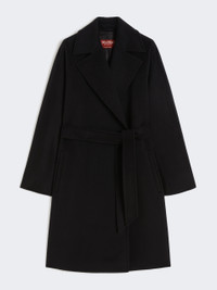 DETAILS Midi robe coat featuring tailored stitching along all the trims. Pure wool broadcloth coat Flared fit Statement lapel collar Long kimono sleeves Matching belt-adorned wraparound fastening Welt side pockets Lined model COMPOSITION AND CARE Fabric 100% virgin wool; lining 100% viscose. Do not wash; do not bleach; do not tumble dry; cool iron; professionally dry clean perchloroethylene - mild process; do not wet clean. Distributed by Max Mara S.r.l., registered office in Reggio Emilia (Italy), Via Giulia Maramotti 4, 42124 (IT)