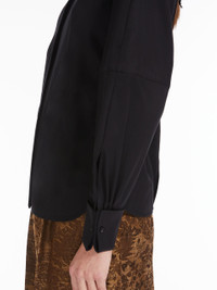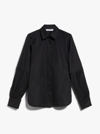 DETAILS Masculine-inspired shirt in stretch cotton twill, interpreted in a modern, feminine version with wide sleeves featuring pleats and customised button cufflink fastenings. Featuring rounded side slits. Concealed button fastening. Length: 65 cm COMPOSITION AND CARE 97% cotton, 3% elastane. Machine wash cold delicate cycle; do not bleach; do not tumble dry; line drying in the shade; cool iron; professionally dry clean perchloroethylene - mild process.; turn the articles inside out before washing.; remove the cufflinks before washing.; contains non-textile parts of animal origin. Distributed by Max Mara S.r.l., registered office in Reggio Emilia (Italy), Via Giulia Maramotti 4, 42124 (IT)