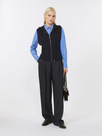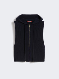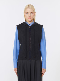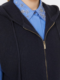 DETAILS Hooded gilet crafted from wool and cashmere yarn, featuring an all-over fisherman’s rib-knit pattern. Designed with a slim fit and refined metal detailing that enhances its functionality and style. Women's hooded gilet in wool and cashmere yarn Slim-fit silhouette Hood with adjustable drawstring Front fastening featuring metal zip with branded pull-tab Knitted drawstring with metal aglets Drawstring hem COMPOSITION AND CARE 80% wool, 20% cashmere. Hand wash cold (40°c max); do not bleach; do not tumble dry; flat drying in the shade; cool iron; professionally dry clean perchloroethylene - mild process; do not wet clean.; iron with a cloth between.; using neutral detergent. Distributed by Max Mara S.r.l., registered office in Reggio Emilia (Italy), Via Giulia Maramotti 4, 42124 (IT)